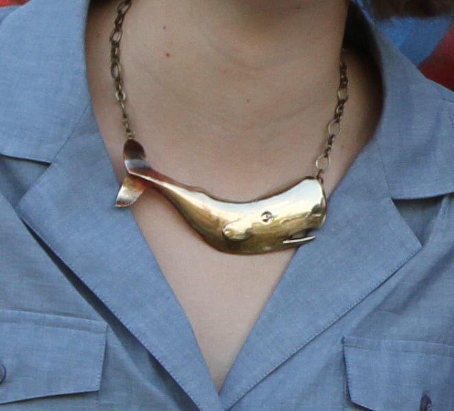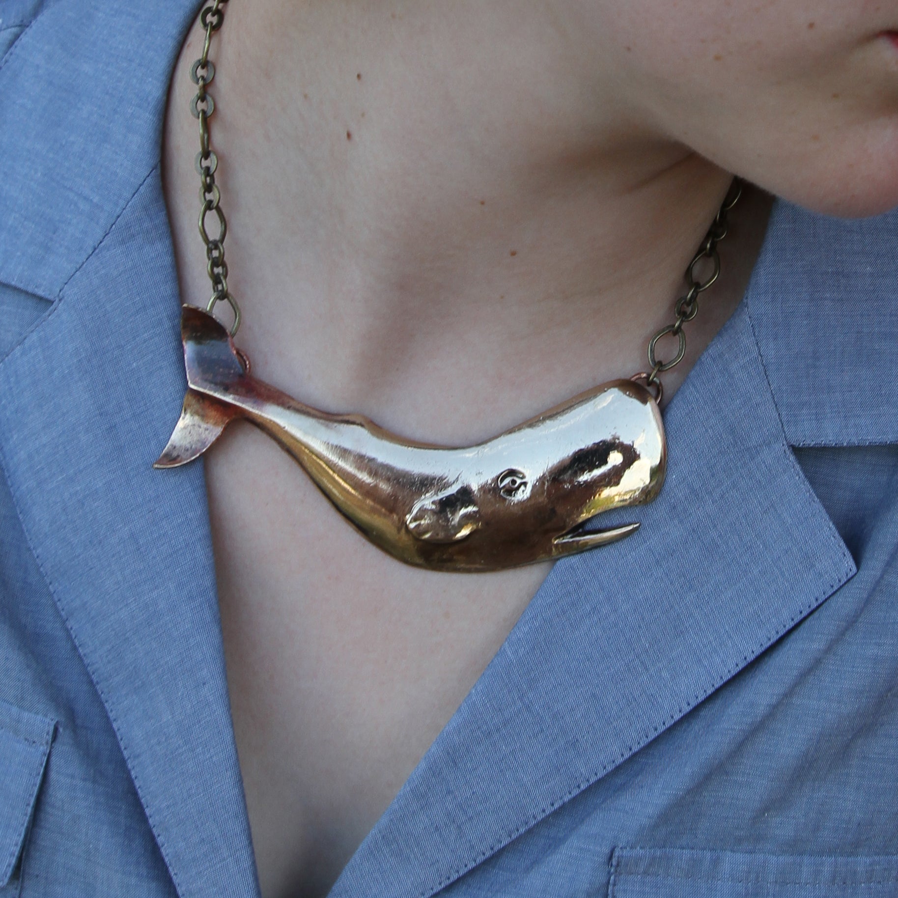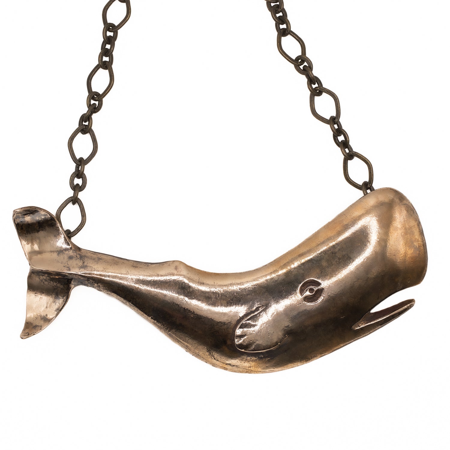 Ahab's Whale necklace cast in bronze or sterling silver, handmade in Austin Texas.