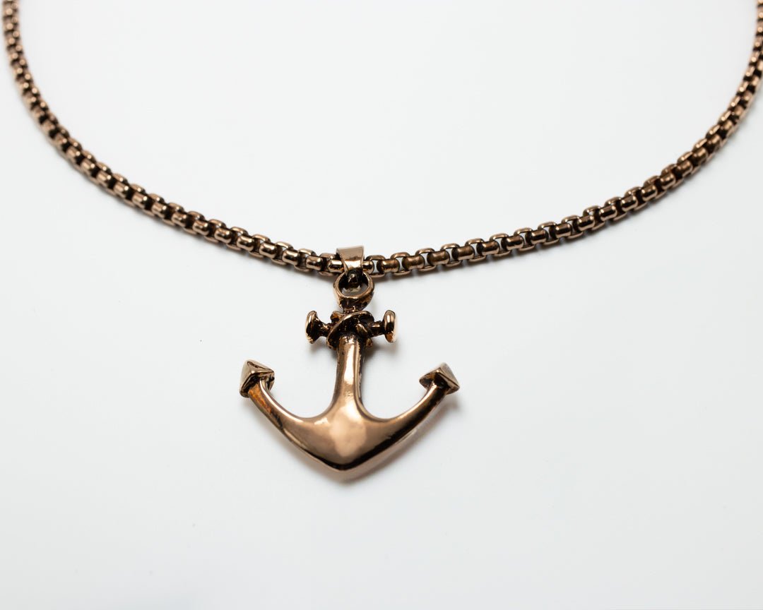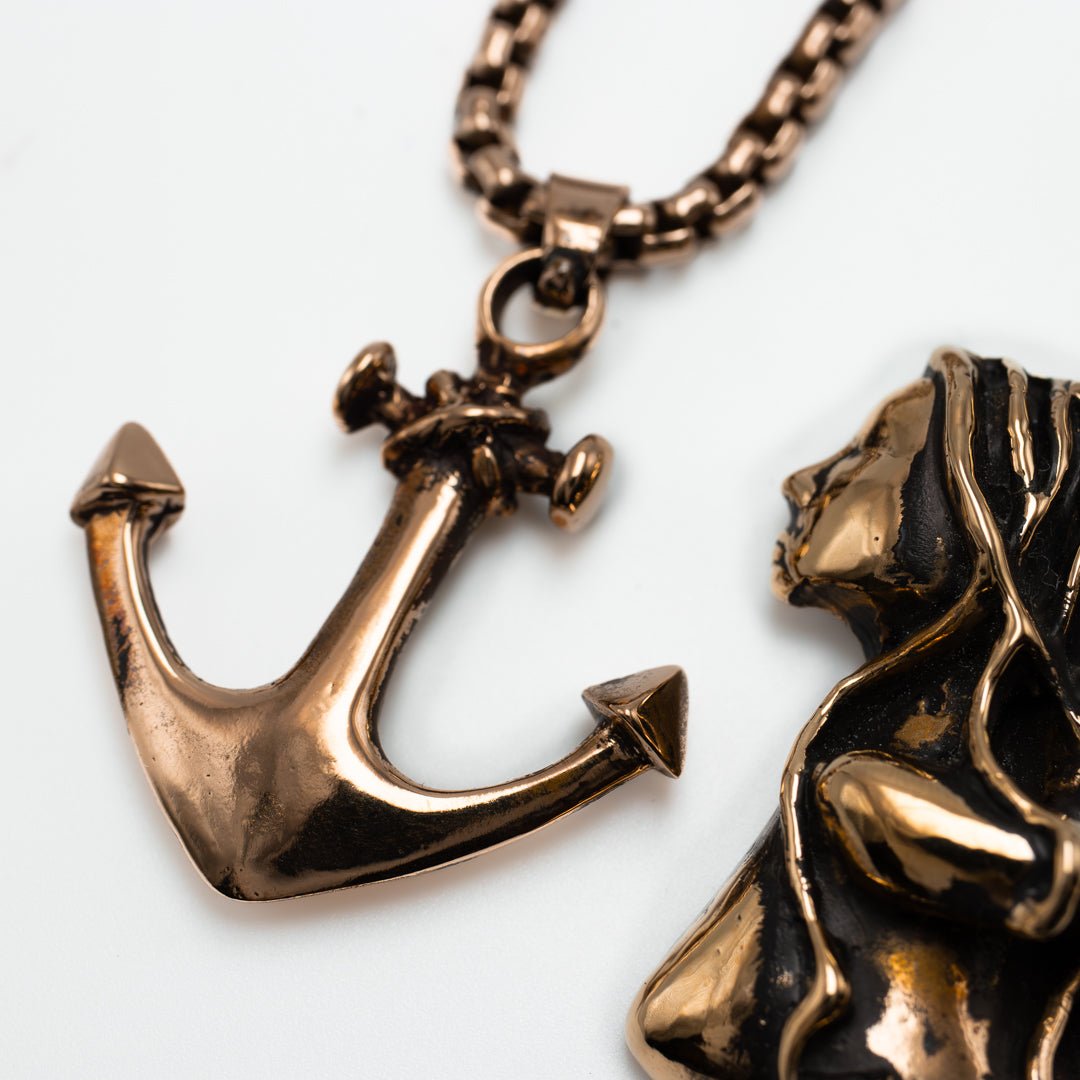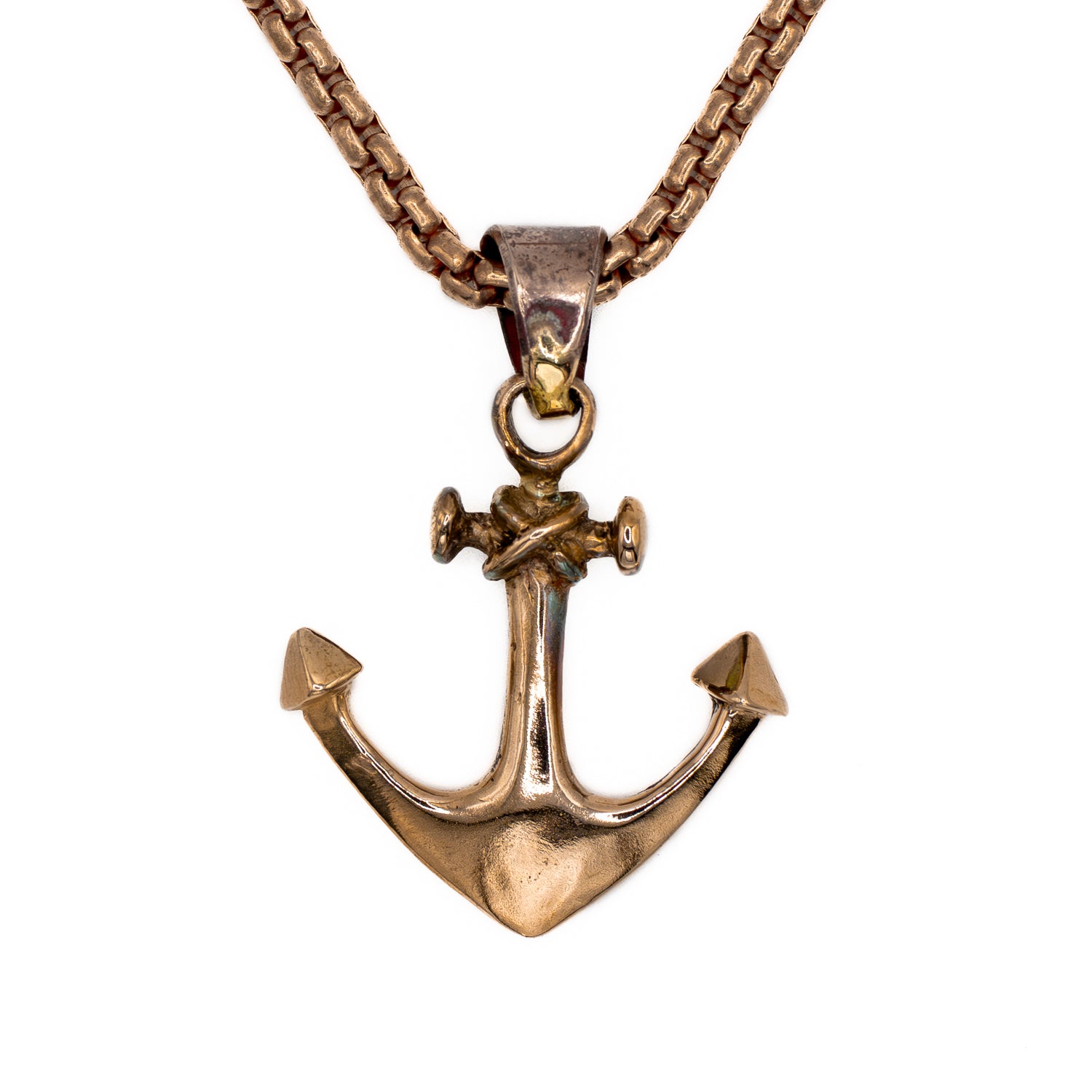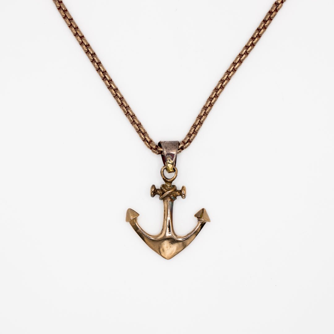 Anchor necklace cast in bronze, handmade in Austin Texas.