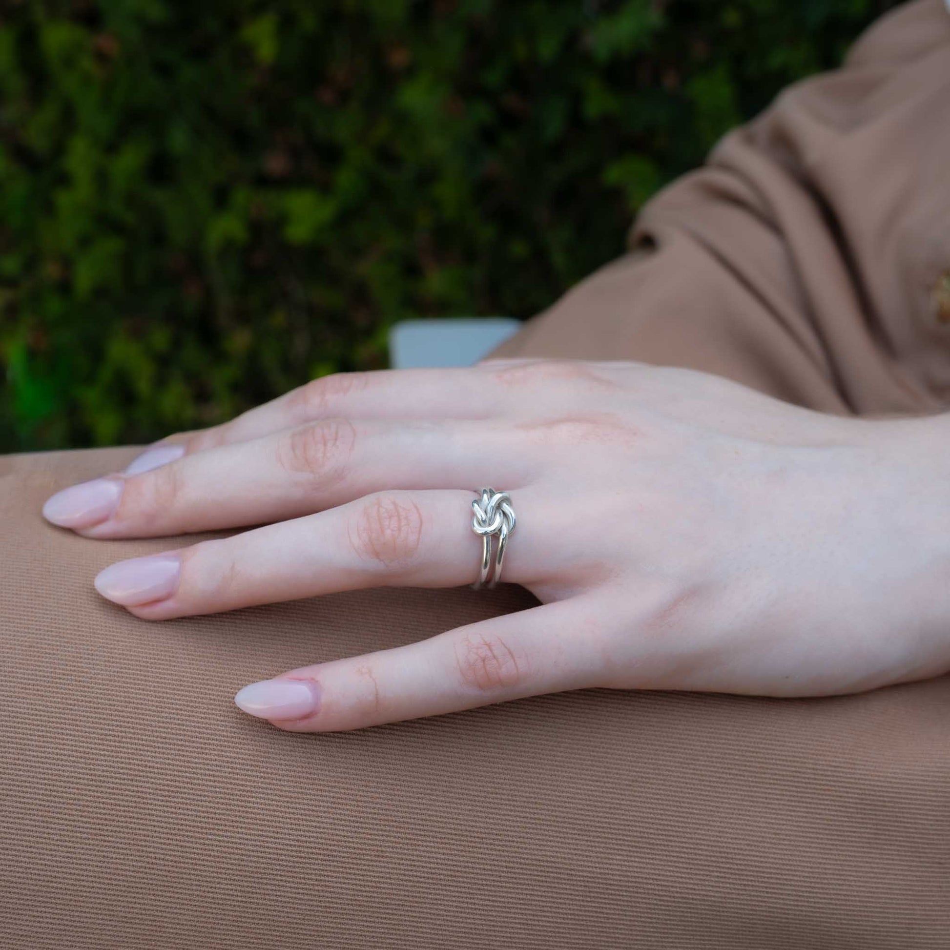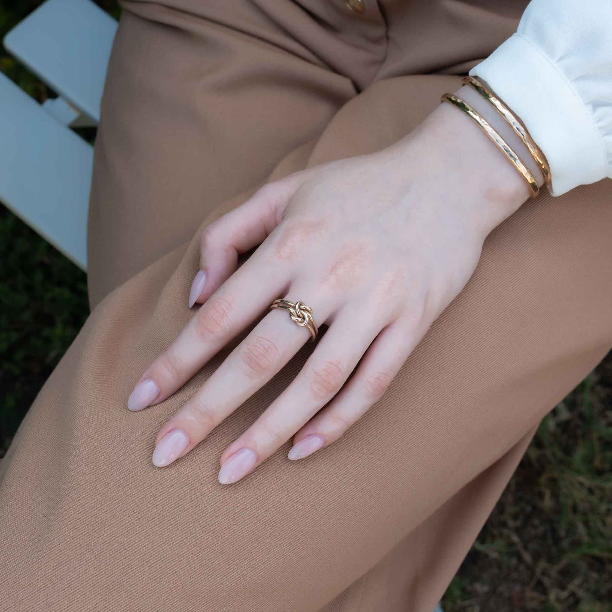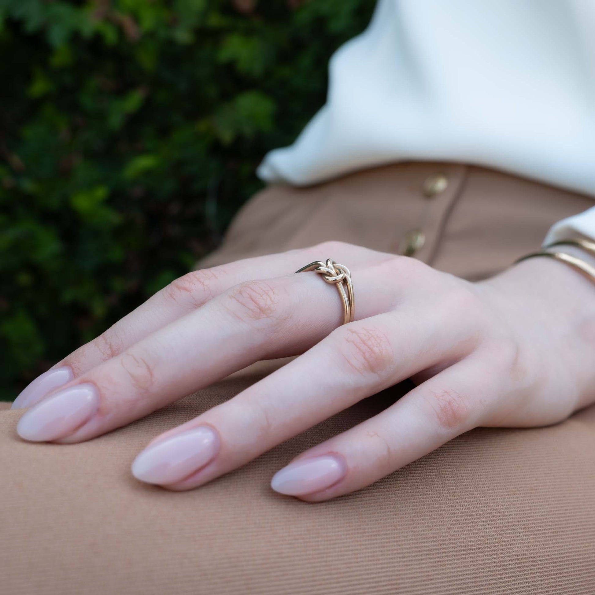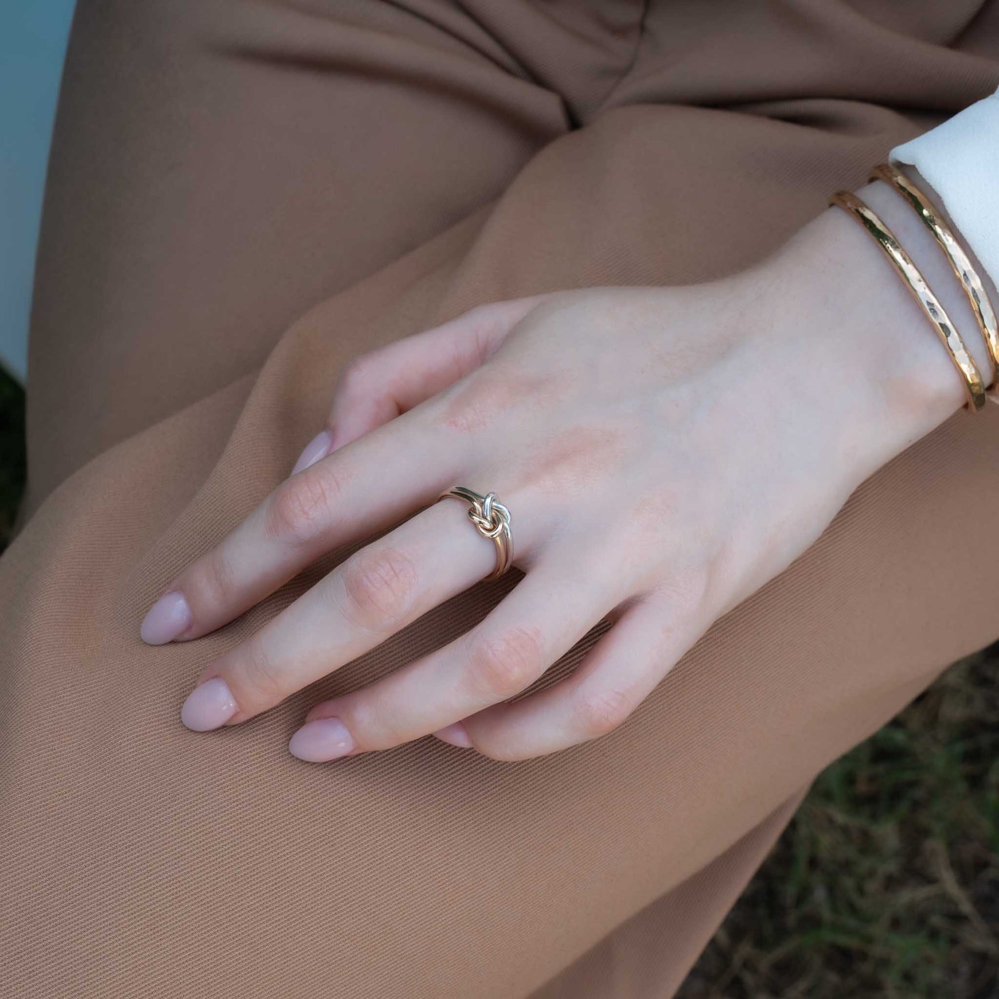 Our Big Love Knot Ring is a modern symbol of connection, handmade in Austin, Texas from your choice of Argentium silver, 14k gold filled, or a mixed duo of silver and gold. This design is timeless and bold, perfect worn solo or stacked with other favorites. Hypoallergenic and waterproof, it’s made to last and keep its shine through every season.