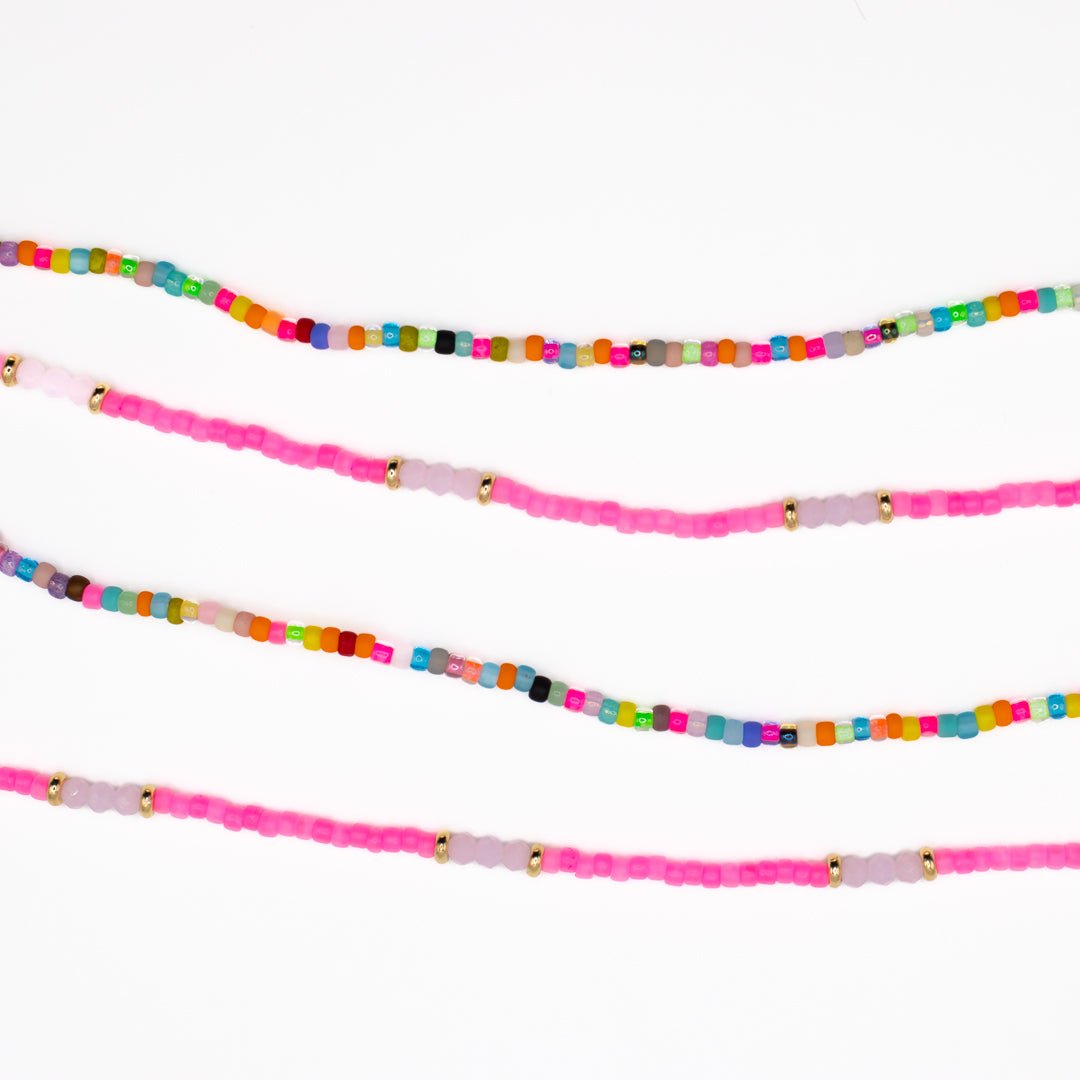 Our seed bead jewelry is made to be lived in, pieces that move with you, and never feel too precious to wear. Each piece is hand-strung with attention to detail, to keep up with the rhythm of your everyday life. Worn solo, it offers a simple touch of color; layered in a stack, it becomes a playful expression of your personal style. These are pieces you’ll reach for again and again. Effortless, versatile, and timeless, just like the best jewelry should be.
