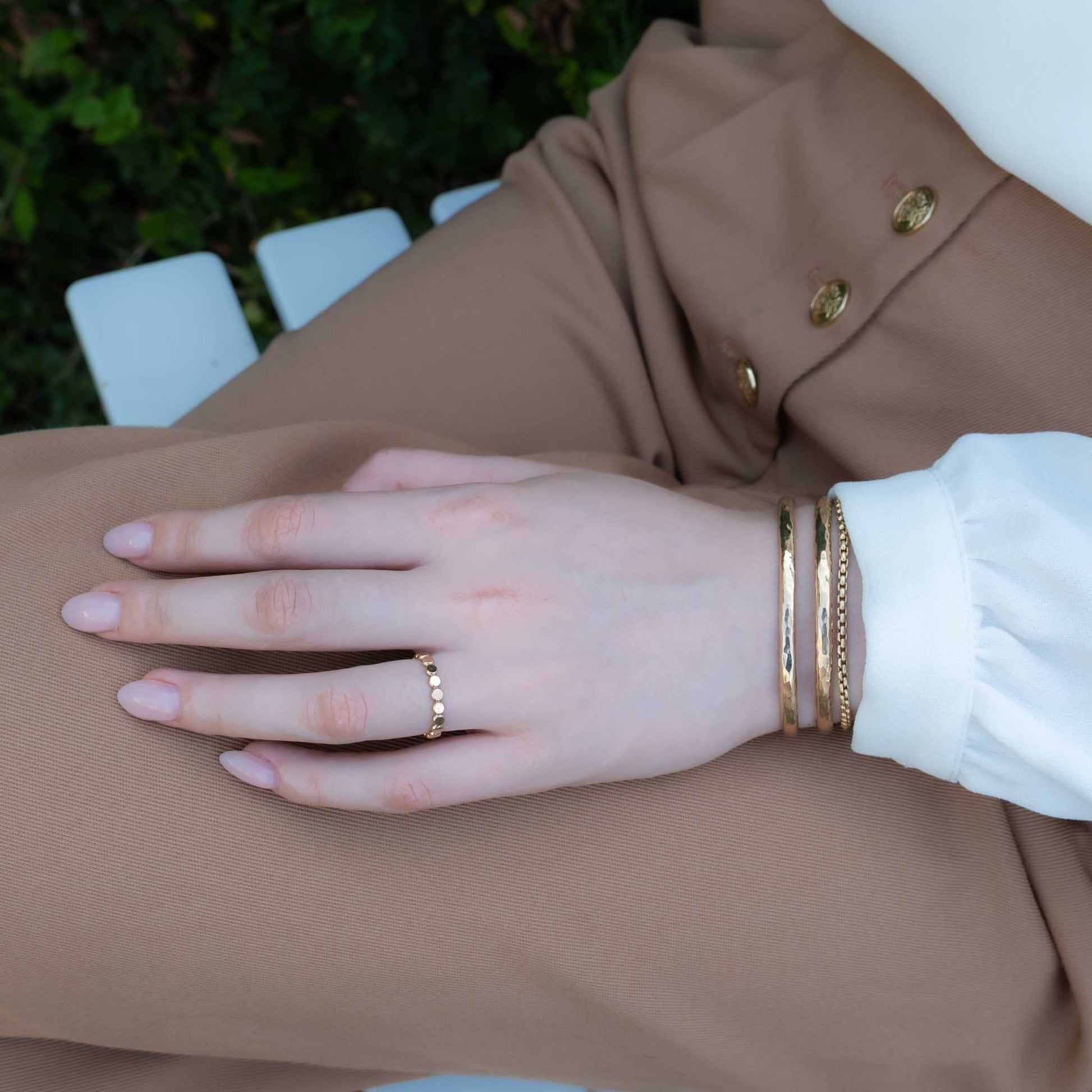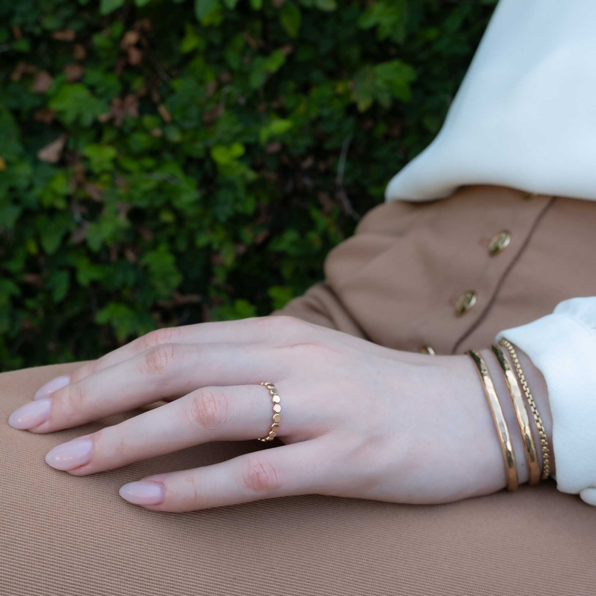 These stunning stacking rings are available in both 14k gold-filled and sterling silver-filled options, offering a quality addition to any jewelry collection. The 14k gold-filled ring is crafted with a thick layer of 14k gold bonded to a base metal, giving you the elegant look and feel of solid gold, but at a more accessible price. The sterling silver-filled ring, on the other hand, is made from high-quality sterling silver, with a sleek and polished finish that adds a classic touch. Each of our stacking rings is handmade with care and attention to detail, ensuring that every piece is unique. All our rings are designed to be worn individually for a minimalist style or stacked together to create a personalized, layered look. Whether you’re dressing up for a special occasion or adding a subtle touch of style to your everyday look, these rings are the perfect accessory. Durable, stylish, and easy to wear, they’re designed to stand the test of time and complement any outfit.