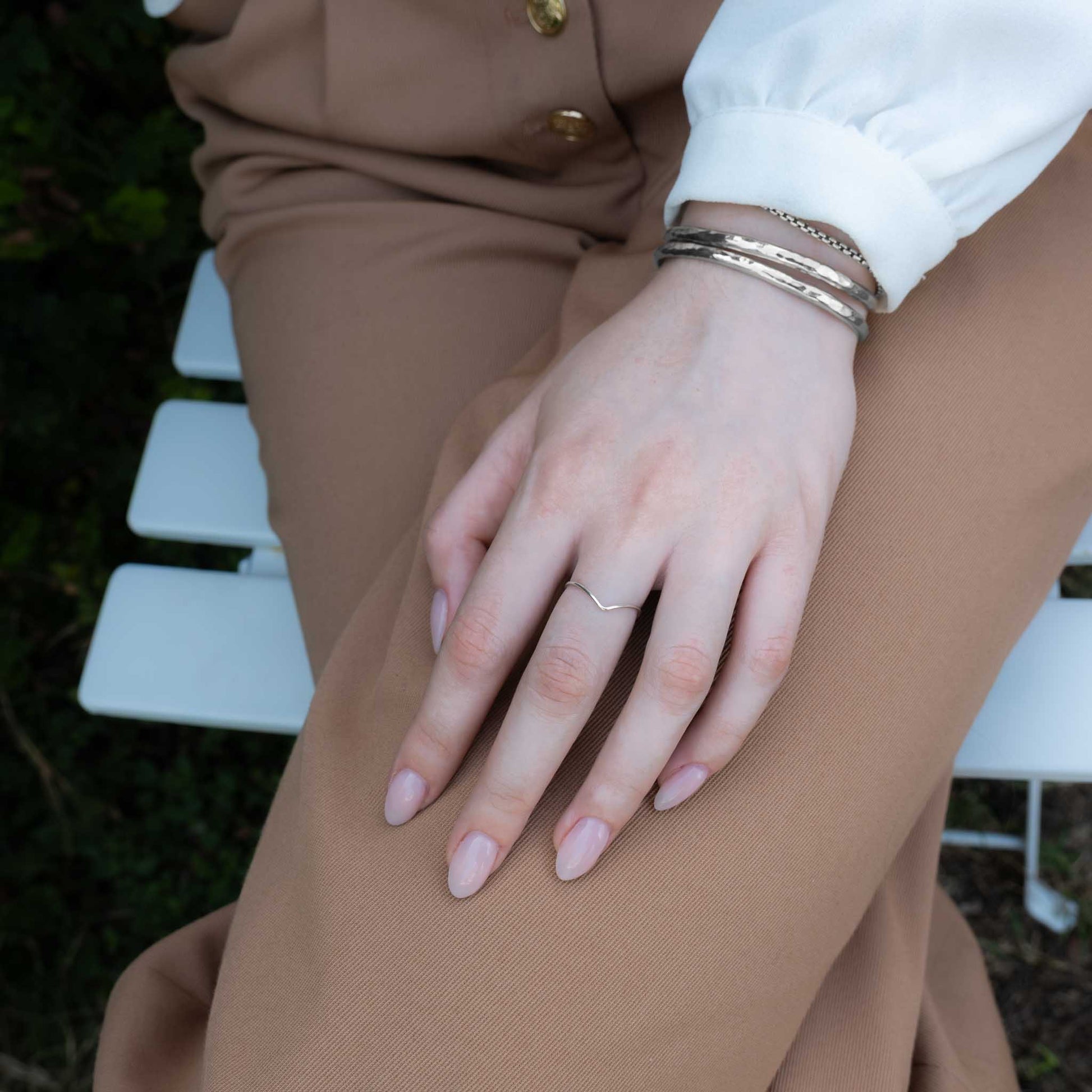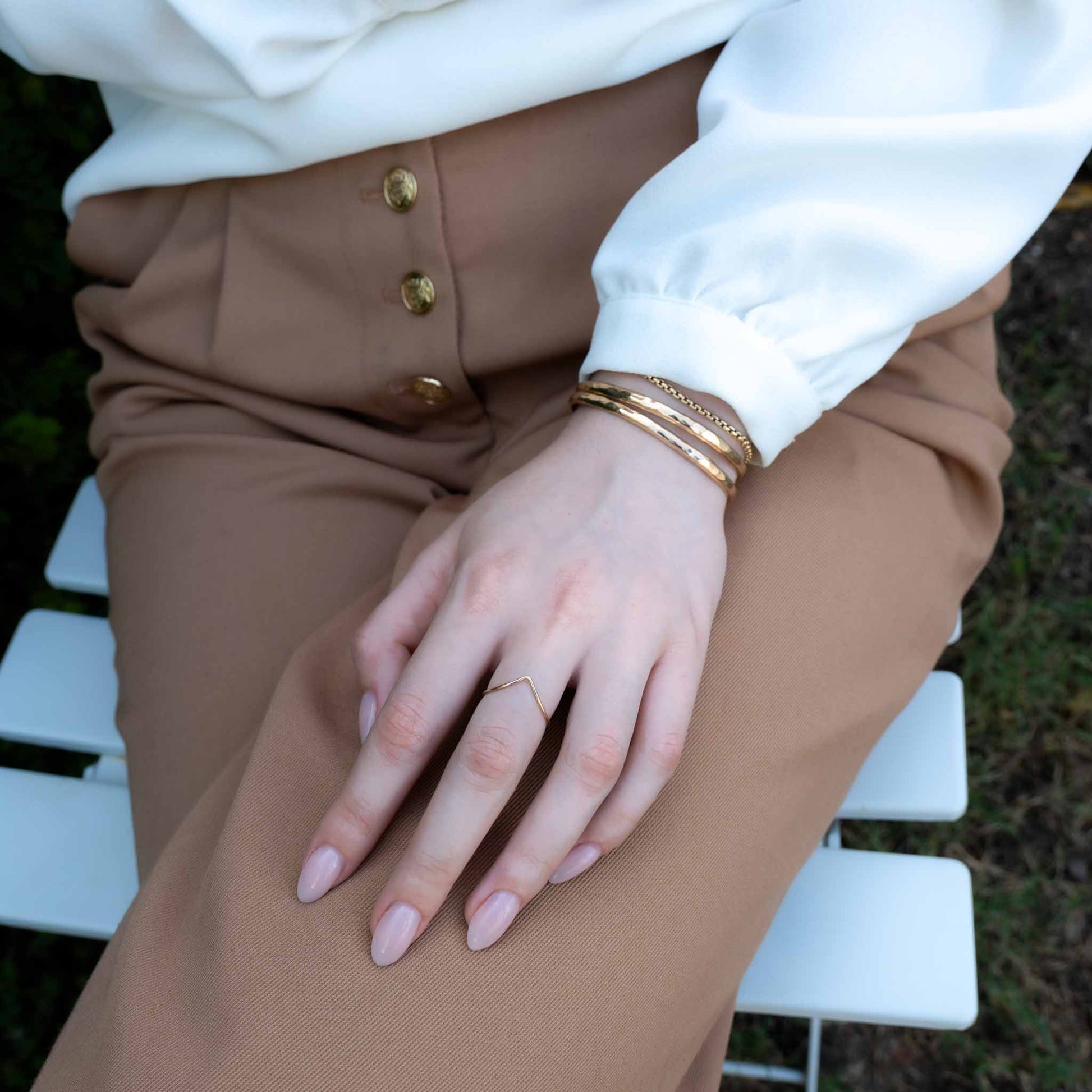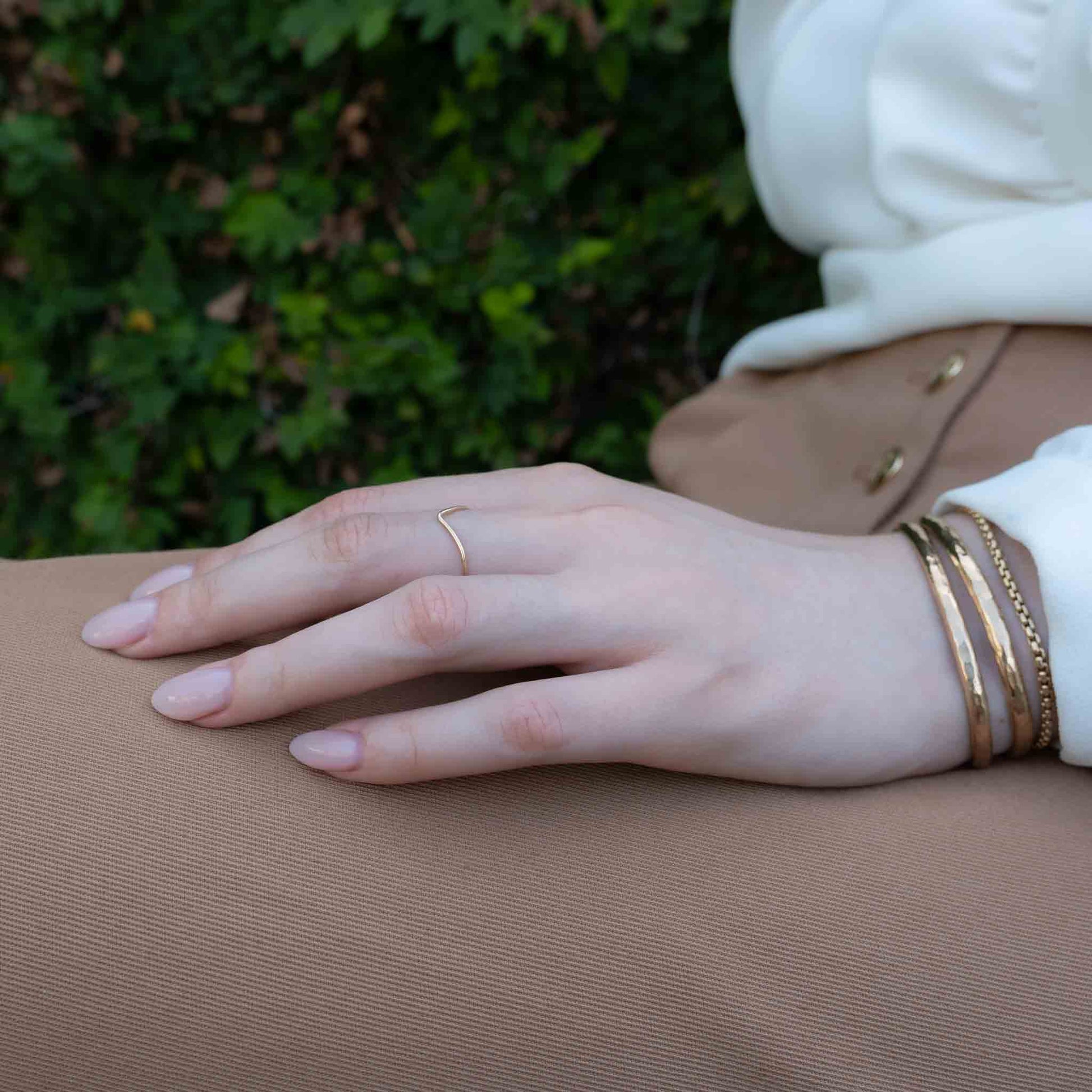 Chevron Stacking Ring — sleek, versatile, and handcrafted in Austin, Texas. Available in 14k gold-filled or sterling silver, this minimalist V-shaped ring is perfect for layering or wearing solo. A timeless jewelry staple designed for everyday wear.