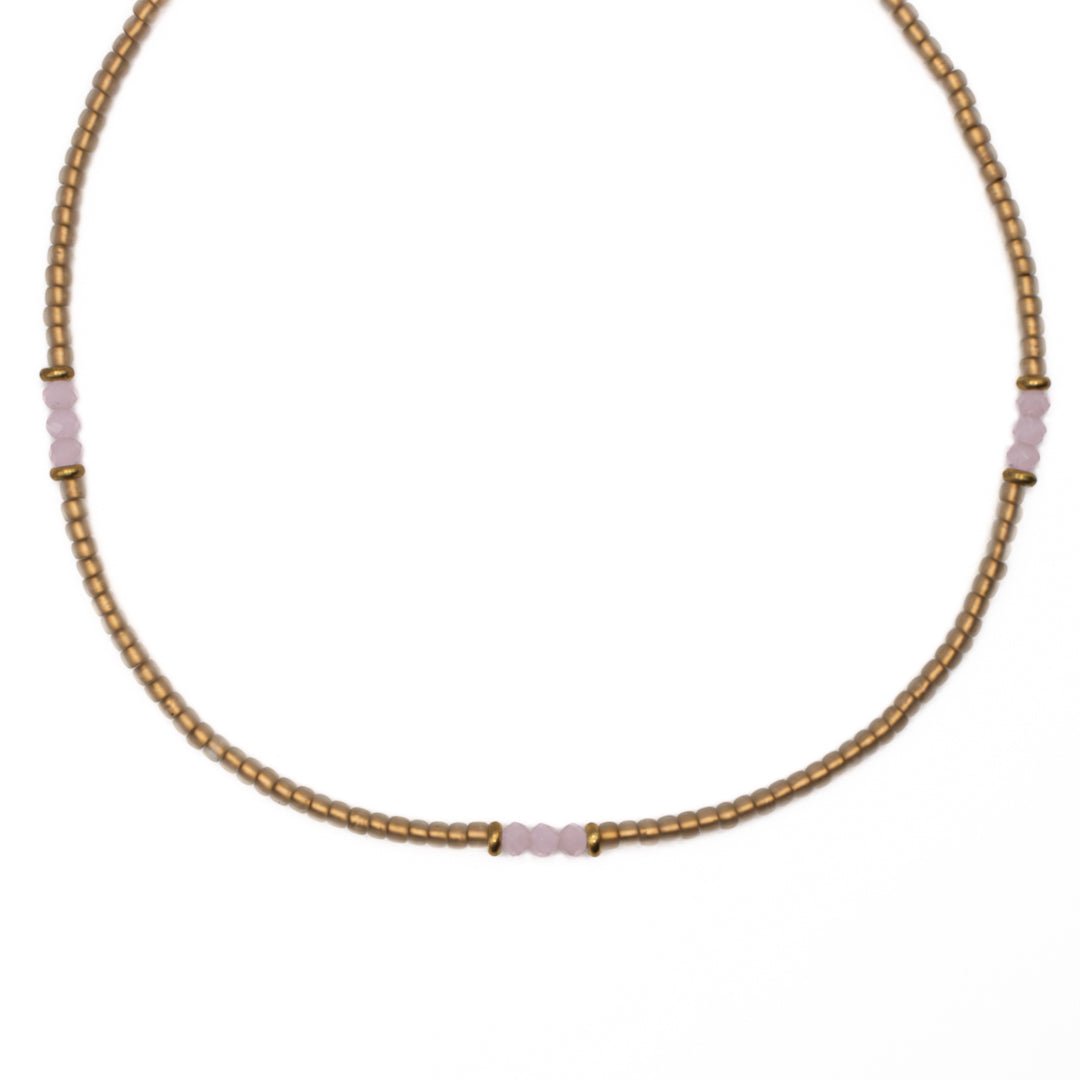 GOLD AND PINK SEED BEAD CHOKER