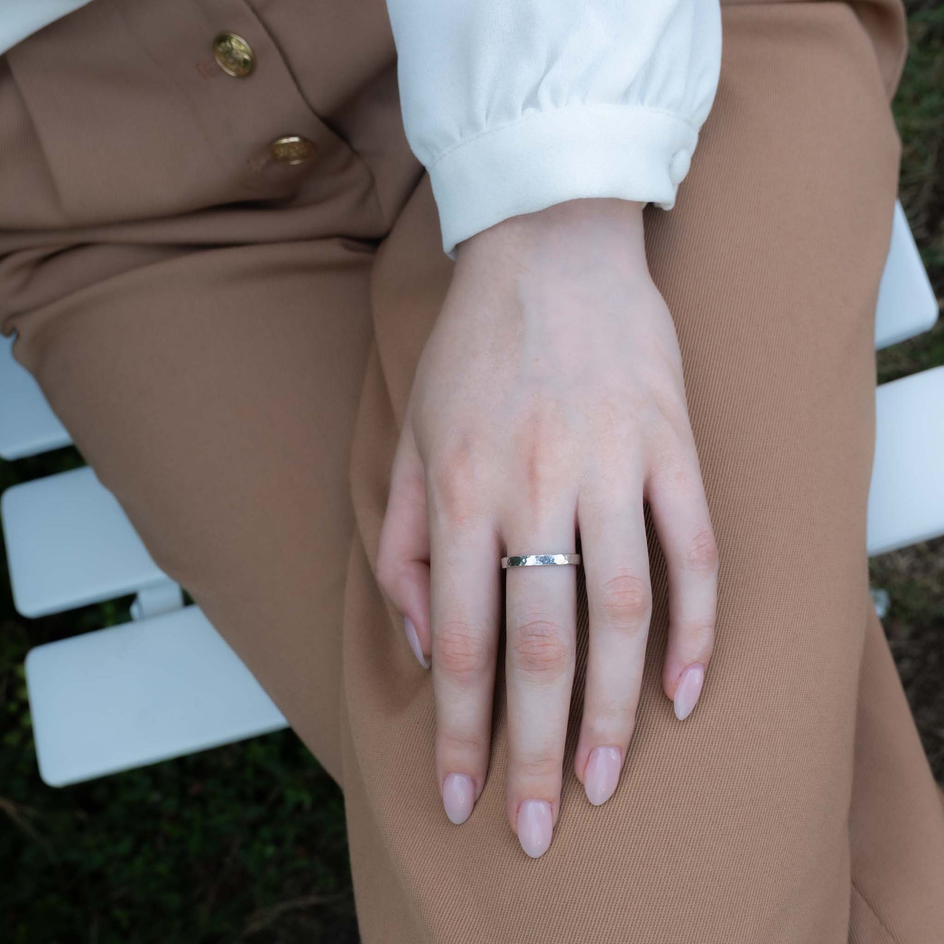 The Hammered Halo Ring brings a textured twist to a classic band. Hand-forged in sterling silver or 14k gold filled, this ring features a subtle hammered finish that catches the light with every movement. Its timeless, minimalist design makes it perfect as a stacking ring, thumb ring, or as a modern wedding band alternative. Lightweight yet strong, it’s an everyday piece that transitions seamlessly from casual to formal looks.