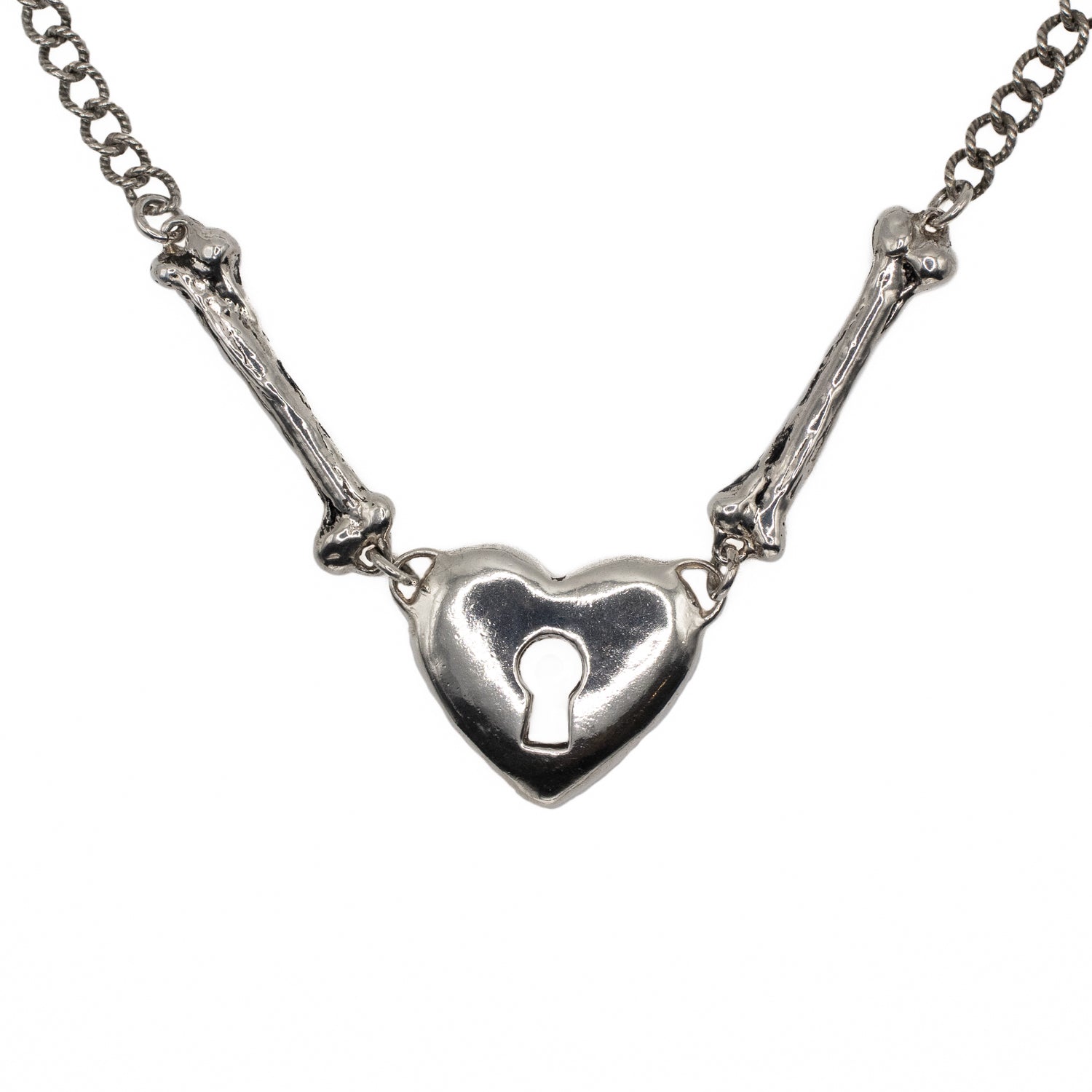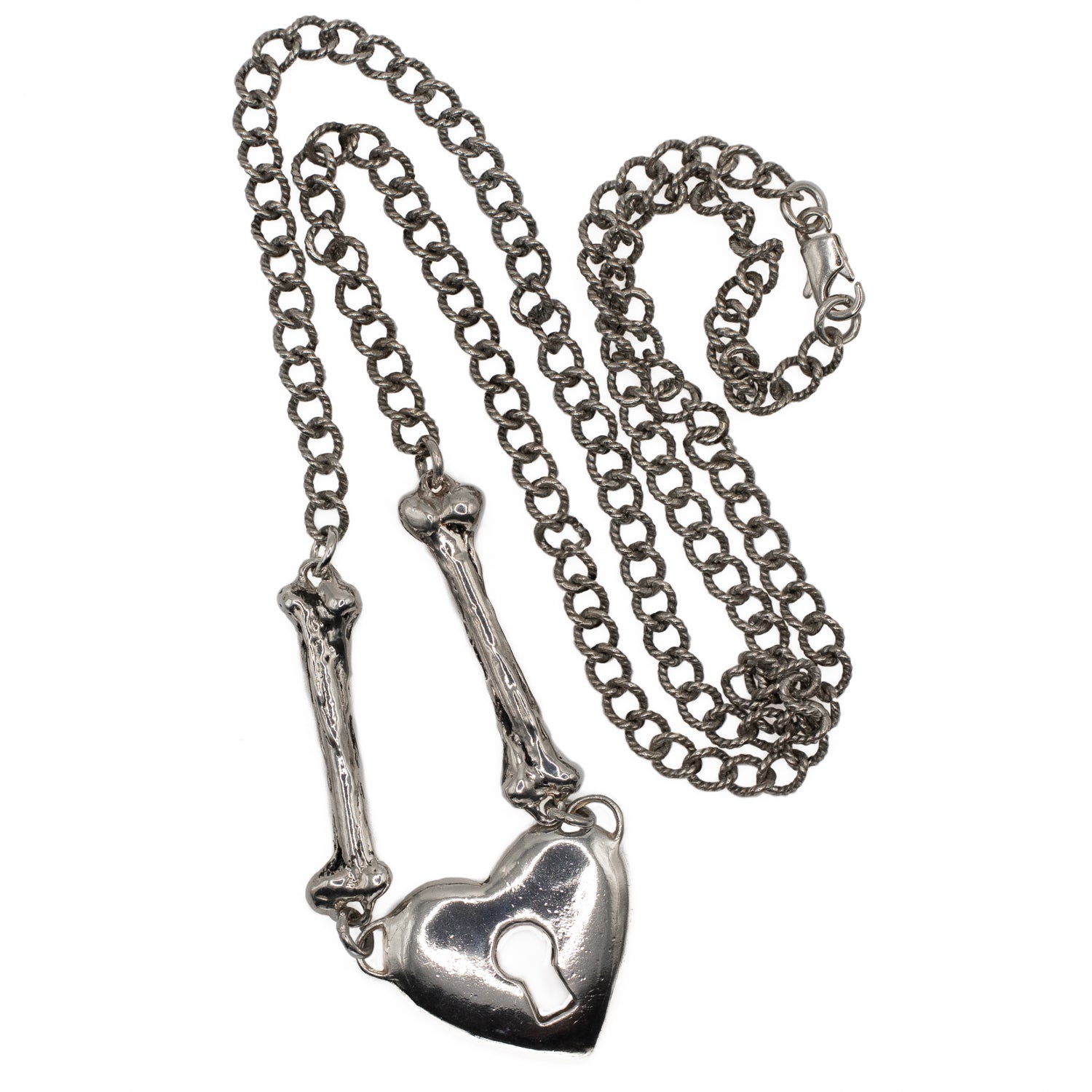 Heart necklace cast in sterling silver, handmade in Austin Texas.