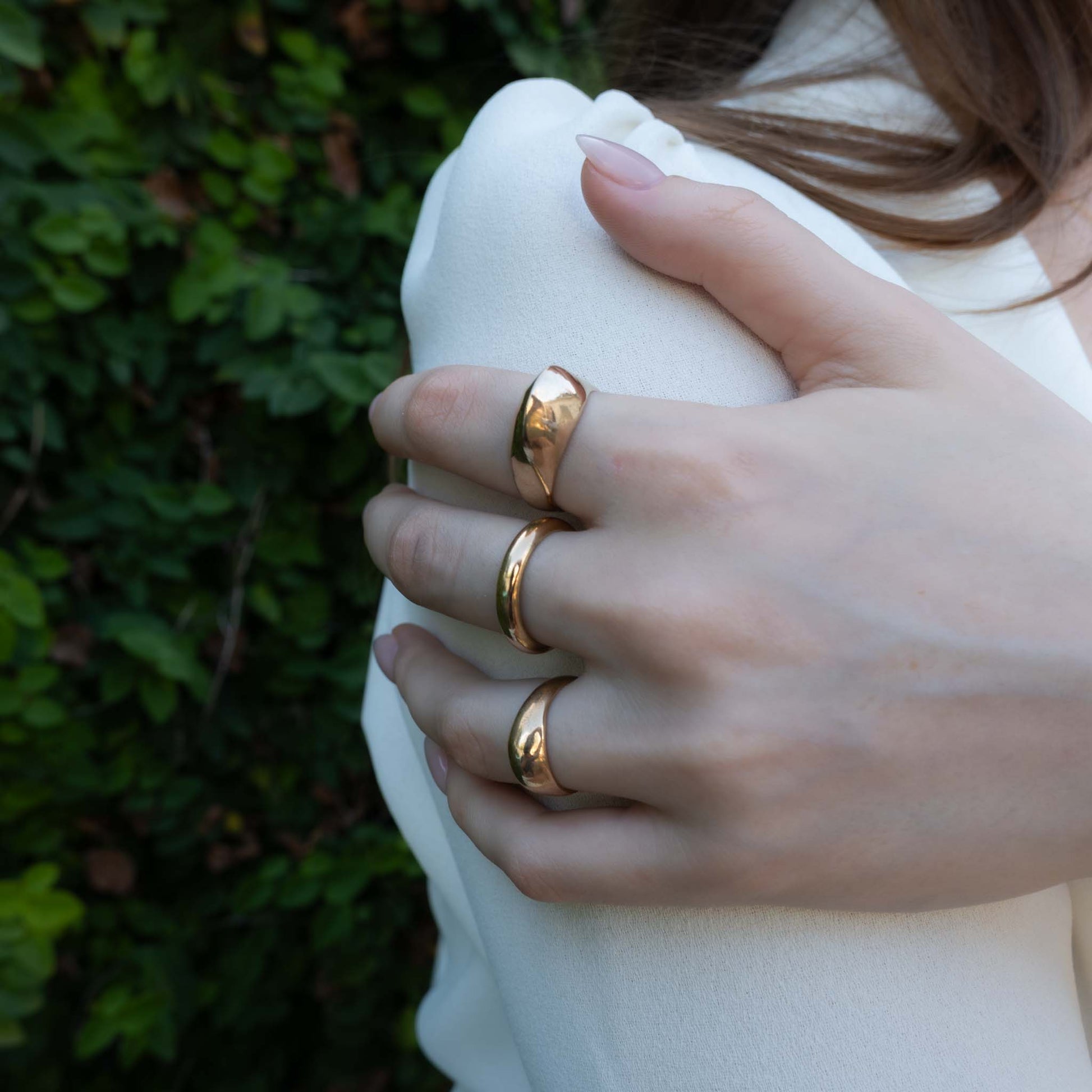 Our 14k gold-filled and sterling silver stacking rings are designed for daily wear, offering both durability and style. You can wear them with confidence throughout your day, whether you're at work, out with friends, or running errands. The only time you should remove your ring is during intense physical activities like heavy lifting, yoga, biking, or any activity where you’re applying pressure to your hands or fingers, in environments where jewelry isn’t suitable, or if you're engaging in water activities where the ring could slip off. Handwashing and showering are perfectly fine, so you don’t have to worry about removing your ring for everyday hygiene. With proper care, these rings will stay beautiful and functional for years to come.