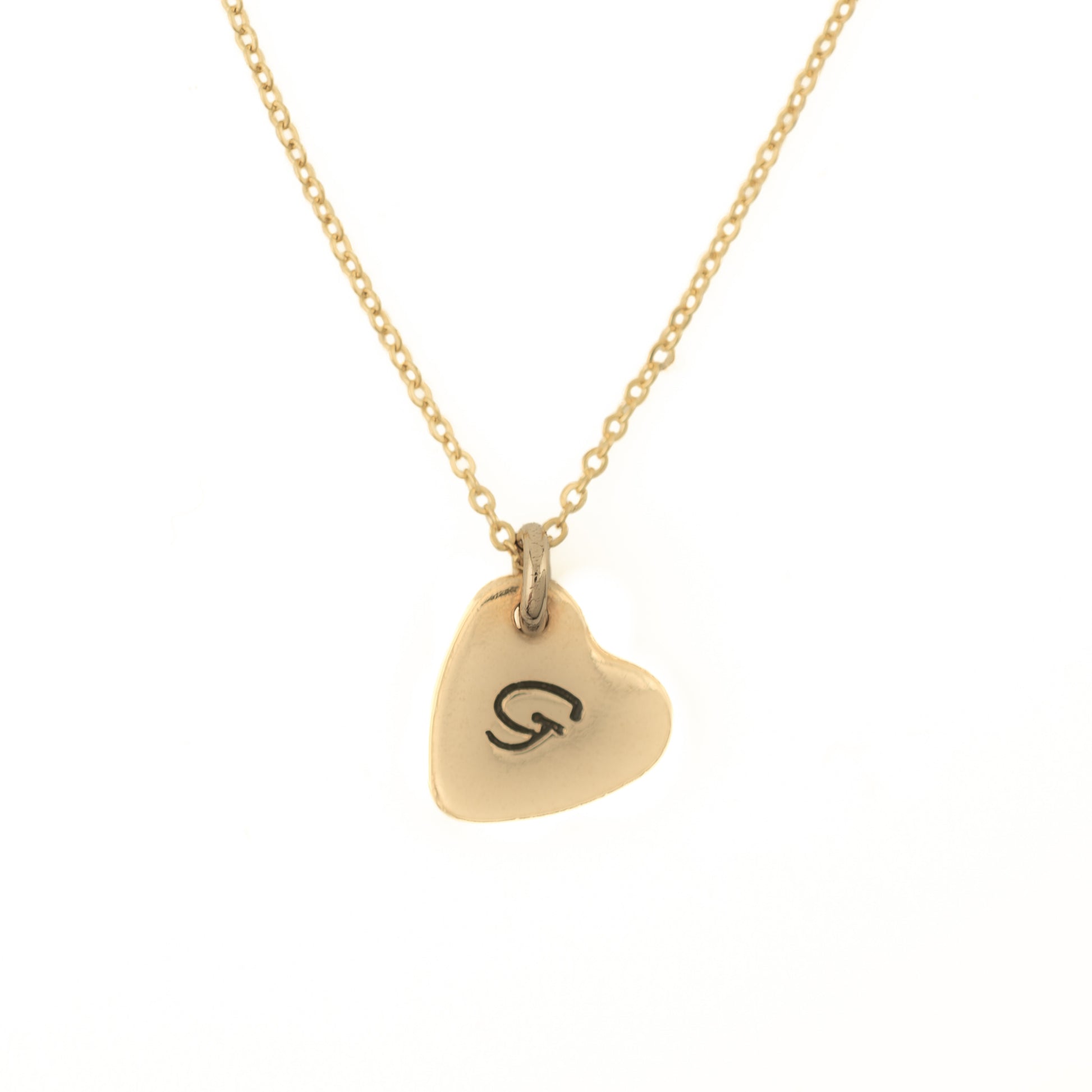 Handmade heart initial necklace stamped with the letter G, hand cut from raw metal and crafted in our Austin, Texas studio off South Congress. Available in Jewelers Gold Brass or Sterling Silver, this minimalist initial necklace is easy to style, perfect for everyday wear, and designed to be worn solo or layered.