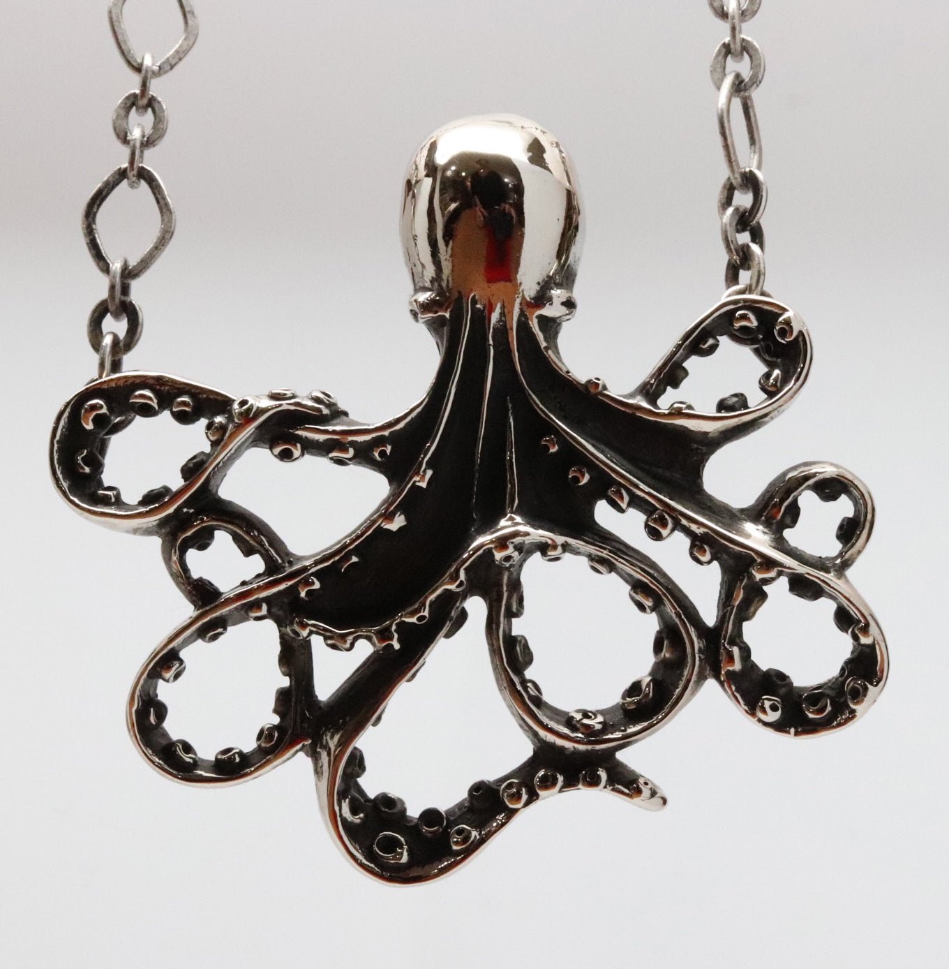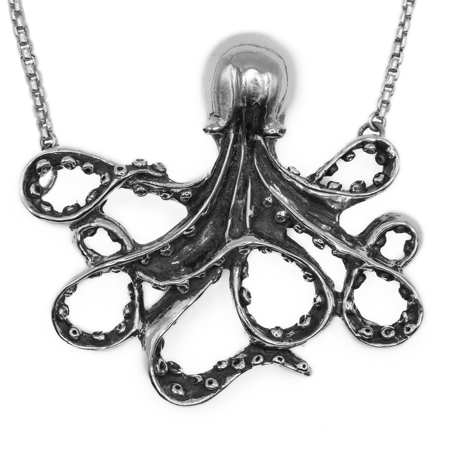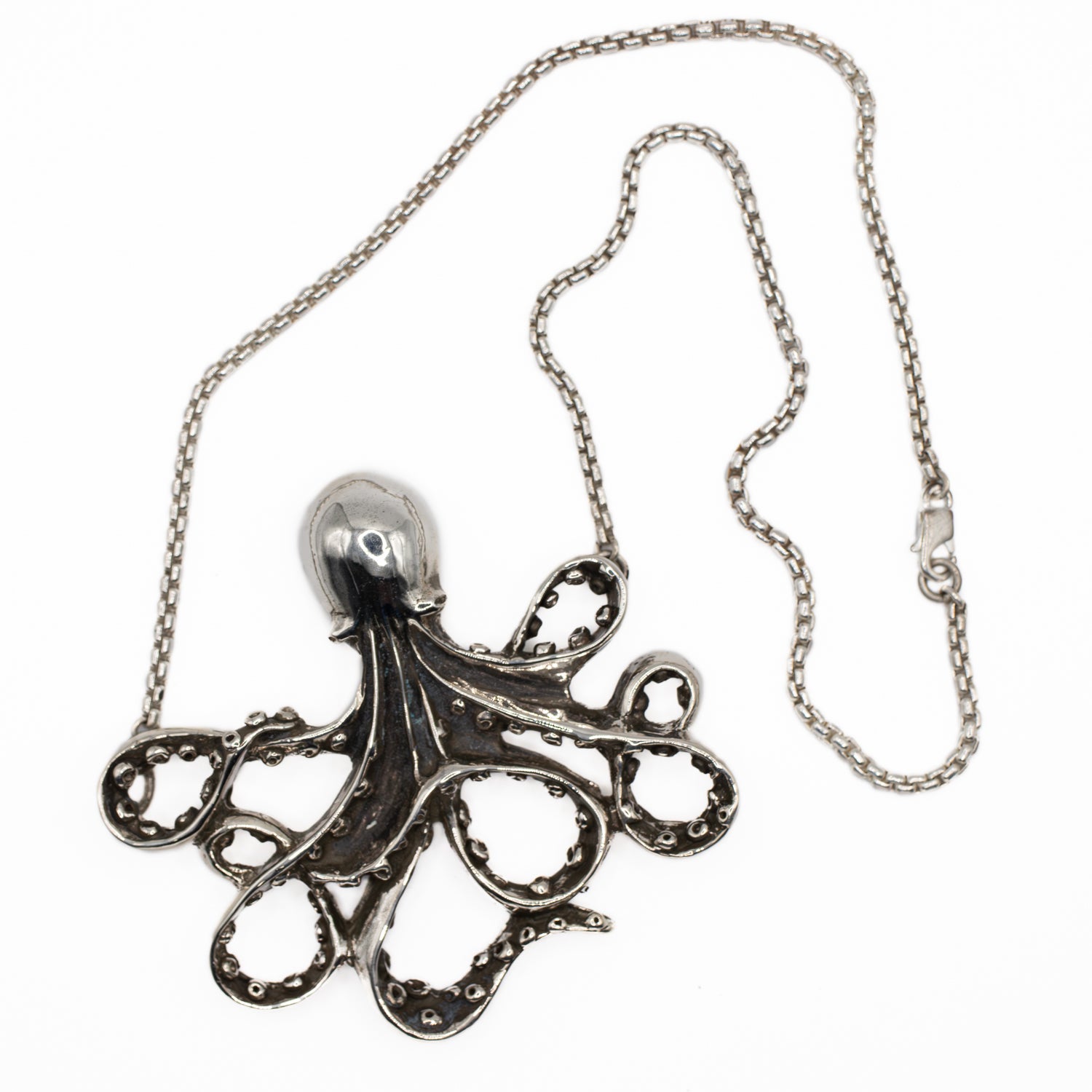 Laviathan Octopus necklace cast in sterling silver, handmade in Austin Texas.