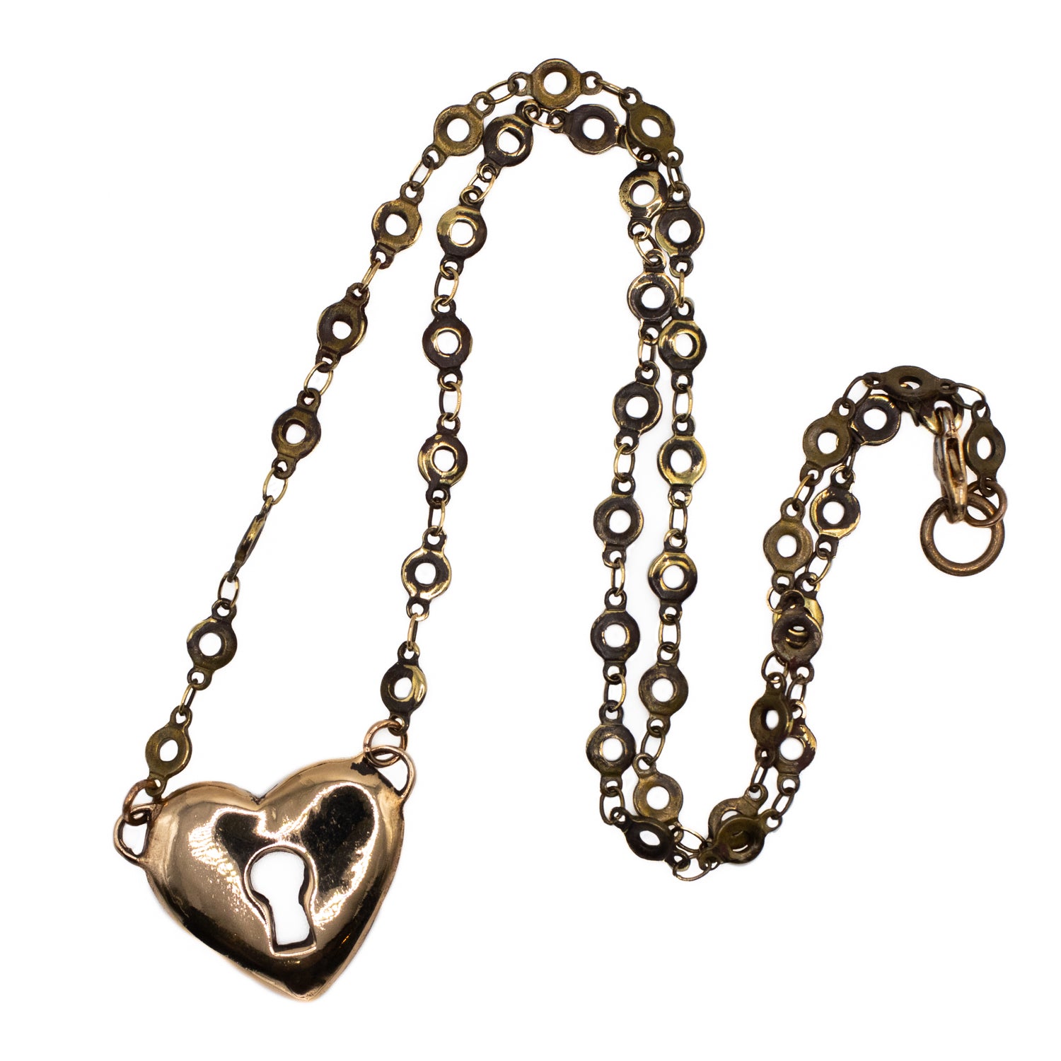 Heart necklace cast in bronze, handmade in Austin Texas.